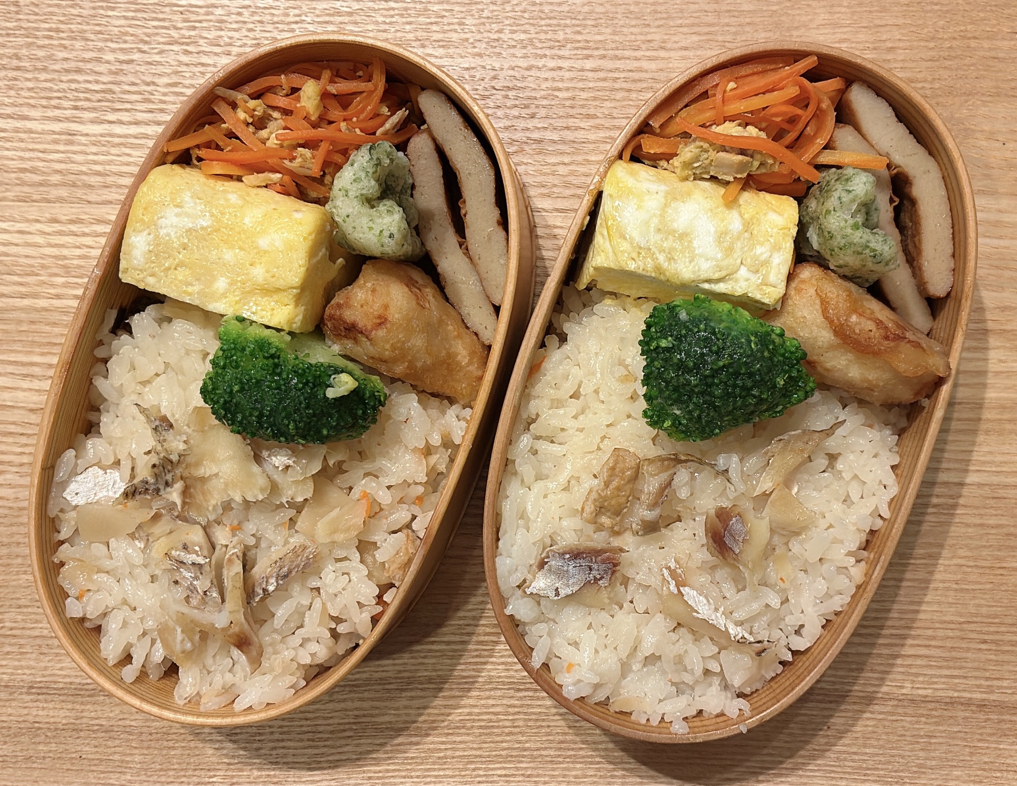 鯛めしとじゃこ天が並んで、気づいたら愛媛っぽいお弁当が完成していた。