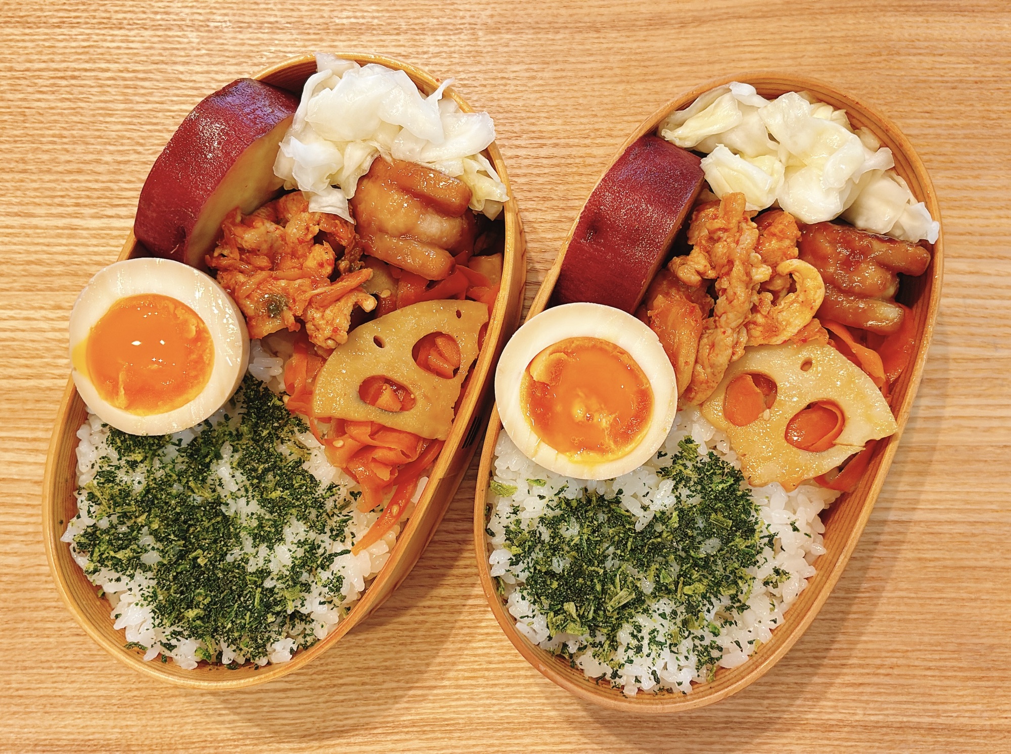 今日はテレワークの日。在宅勤務だからといって手を抜かず、いつもどおりわっぱ弁当を作りました。