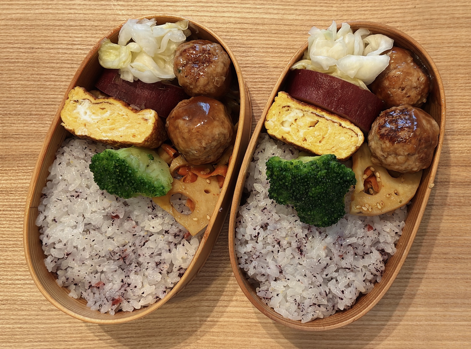 今朝は実は失敗しかけました。うずらの卵入り鶏つくねに加えて、ひき肉の蓮根挟み焼きも入れようとしたんです。でも妻から「それ、両方つくねじゃない?」と指摘されてハッとしました。確かに似たような食感とビジュアルになってしまうところでした。