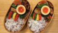 彩りを考えて、きゅうりとパプリカのピクルスを添えました。酸味が食欲をそそります。ほうれん草とにんじんのナムルは、ごま油の香りが食欲をそそる一品。味付け玉子は、わっぱ弁当の定番ですね。