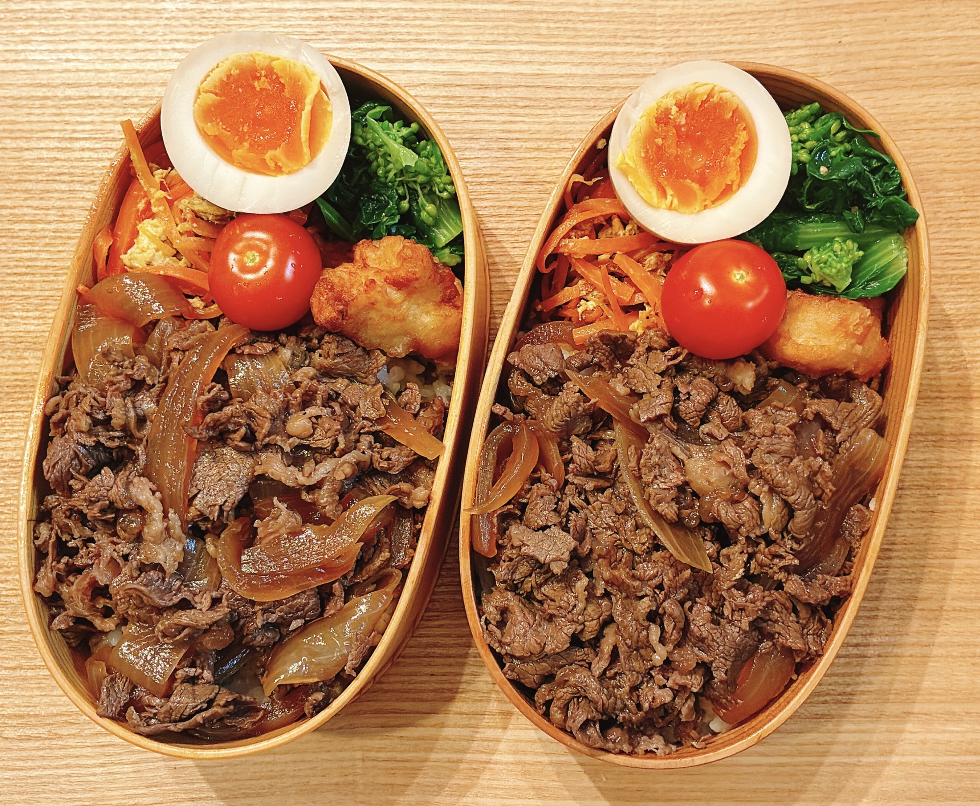 今日はご飯の上に、豚バラ玉ねぎをのせてみた。丼スタイルである。正直、茶色っぽいお弁当になってしまったけど、にんじんしりしりのオレンジと菜の花の緑が彩りを添えてくれて、色合いはまあまあかな?と自己評価。